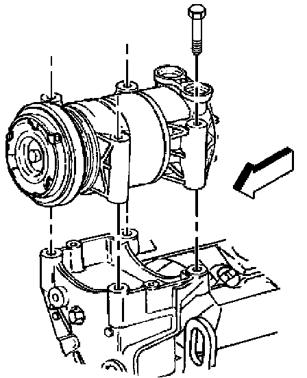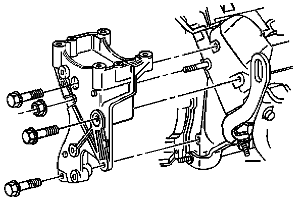 19. Remove the air conditioning compressor mounting bolts and support compressor with wire.