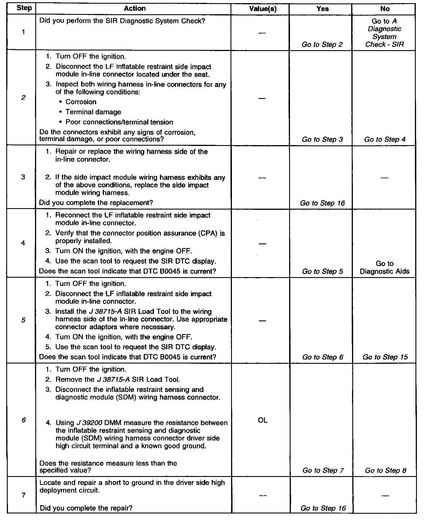 6. Tests for a short to ground in the driver side high deployment circuit.