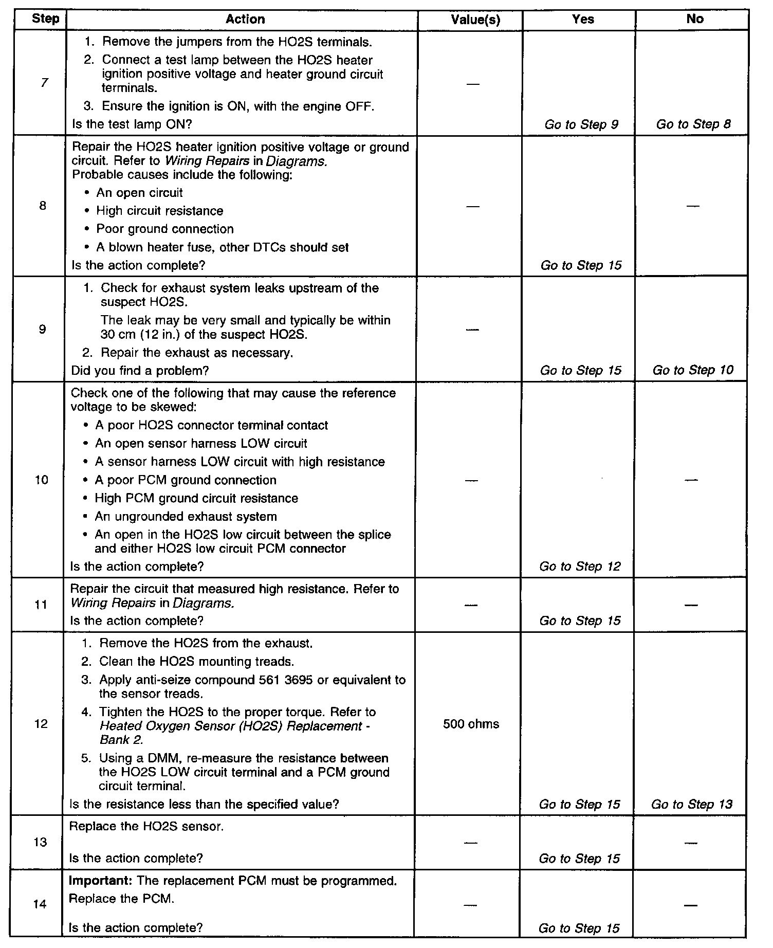 ^ An open or a short to voltage on either the HO2S signal or HO2S low circuits