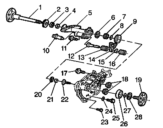 4. Install the axle shaft (output shaft) and the tube assembly. Refer to Output Shaft, Bearing, and Tube Replacement.