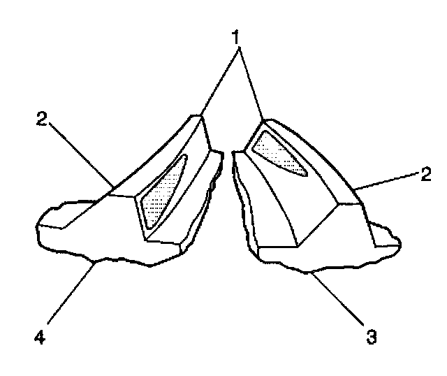 The side of the ring gear tooth which curves outward, or is convex, is the drive side (4). The concave side is the coast side (3). The end of the tooth nearest the center of the ring gear is the toe end (2). The end of the tooth farthest away from the center is the heel end (1).