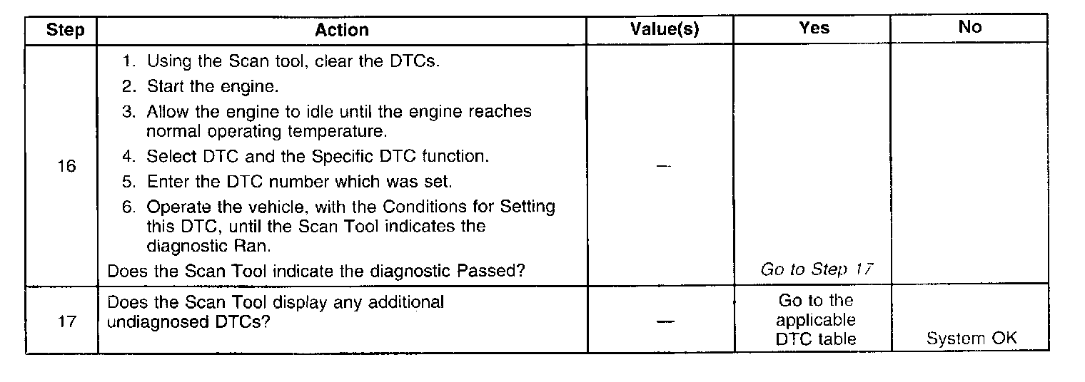 ^ A history DTC will clear if no fault conditions have been detected for 40 warm-up cycles. A warm up cycle occurs when the coolant temperature has risen 22°C (40°F) from the startup coolant temperature and the engine coolant reaches a temperature that is more than 70°C (158°F) during the same ignition cycle.