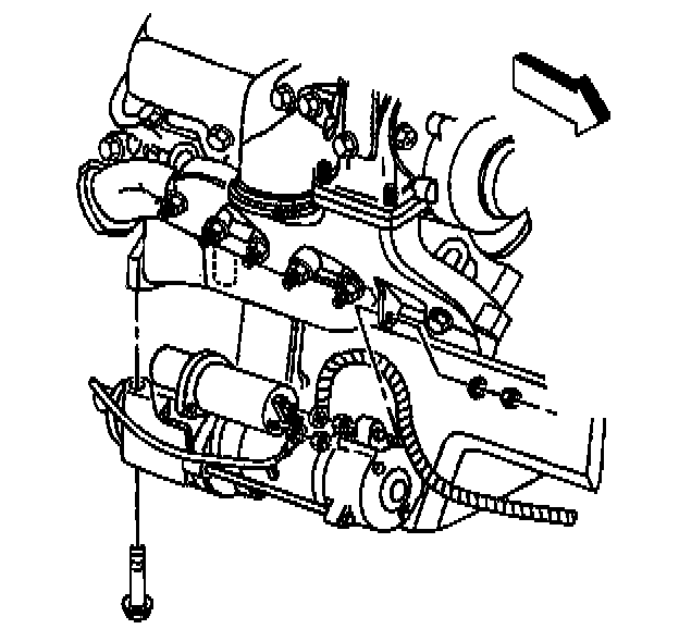 3. Install the starter mounting bolts and washers, if equipped, through the starter to the engine.