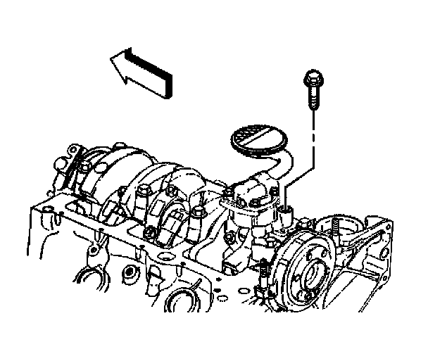 4. Install the oil pump bolt attaching the oil pump to the rear crankshaft bearing cap.