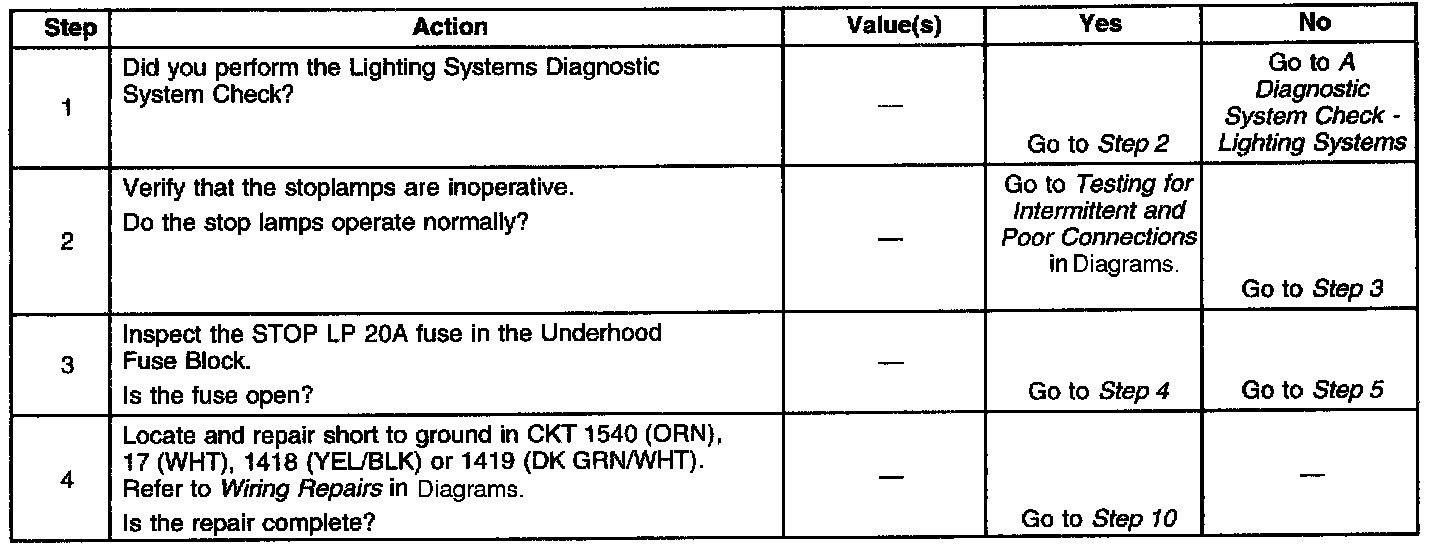 Stop Lamps Inoperative (Pickup/Utility Except Export) (Part 1 Of 2):