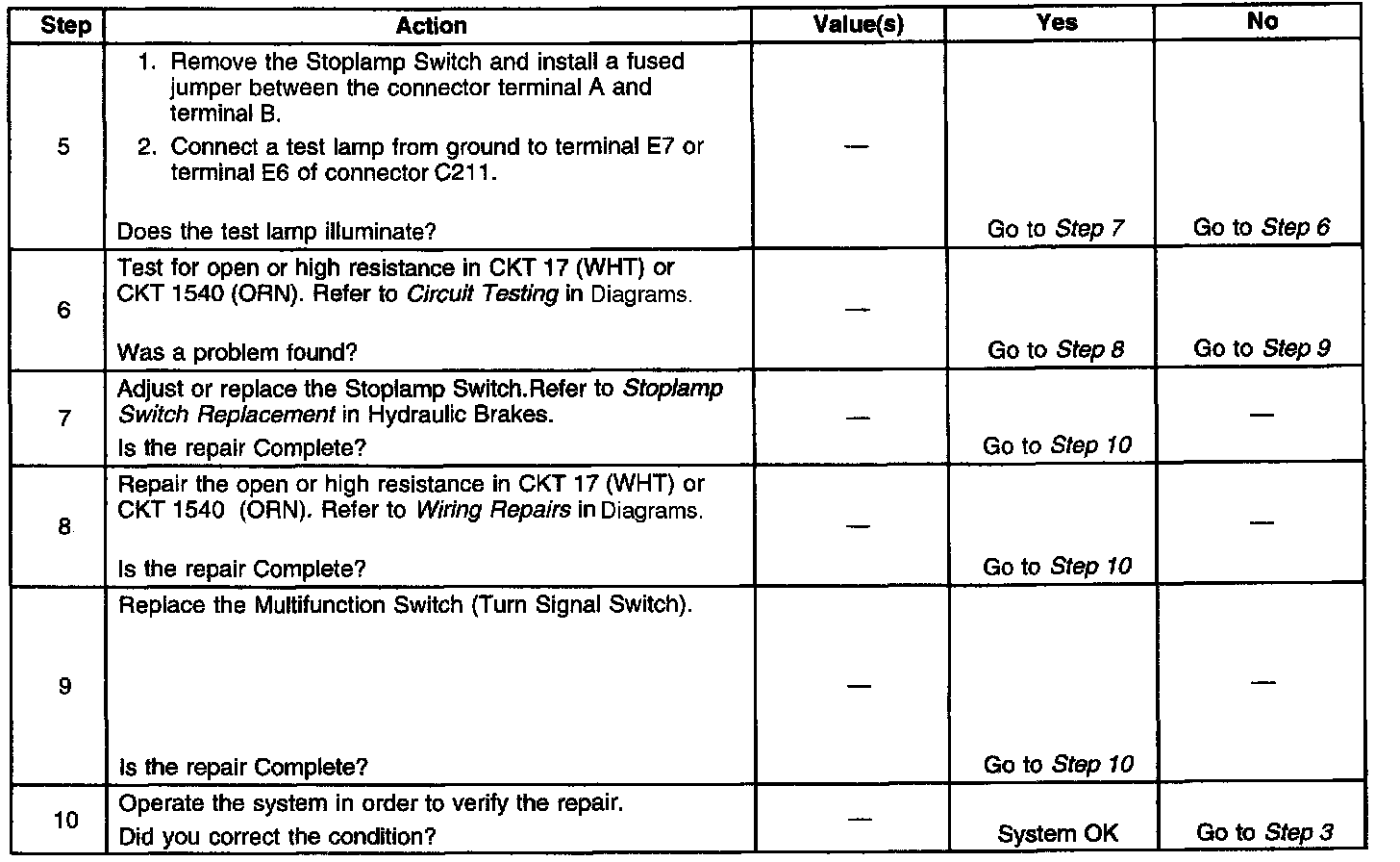 Stop Lamps Inoperative (Pickup/Utility Except Export) (Part 2 Of 2):