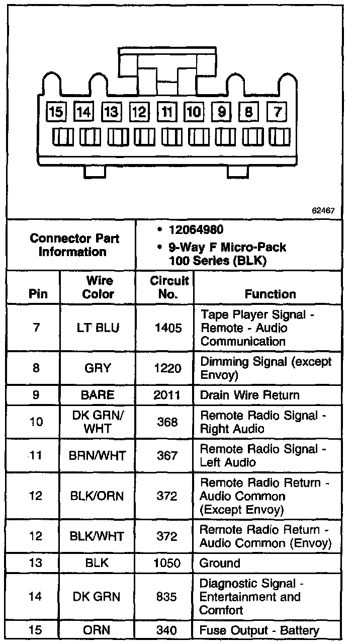 Radio (All Except Bravada) Connector C3 (w/ Remote Tape/CD Player):