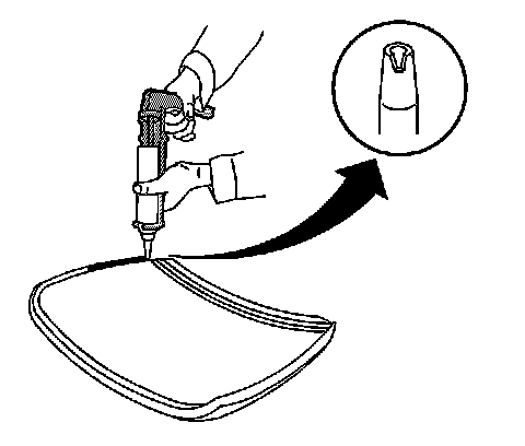 27. When using the extended method, use the edge of the quarter window or the inside edge of the reveal molding as a guide for the nozzle in order to apply the urethane adhesive to the inner surface of the quarter window.