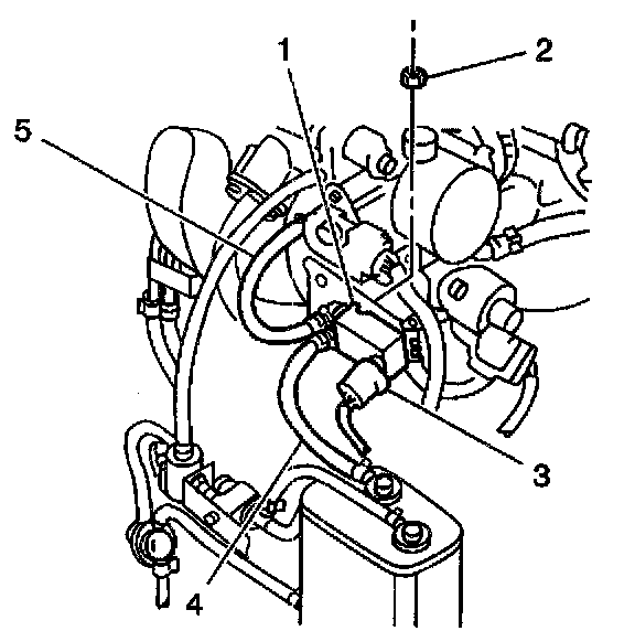 4. Remove the EVAP canister purge valve and the bracket (1) from the engine.