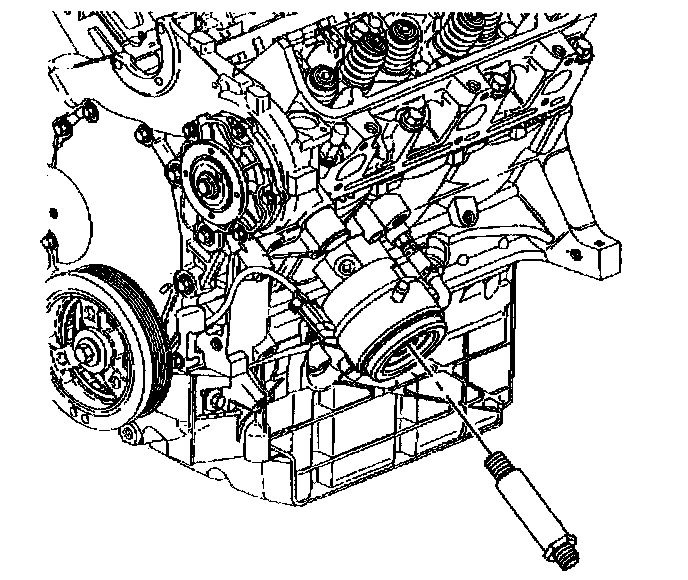 4. Remove the oil filter. Refer to Engine Oil and Oil Filter Replacement (Without Oil Cooler) or Engine Oil and Oil Filter Replacement (With Oil Cooler).