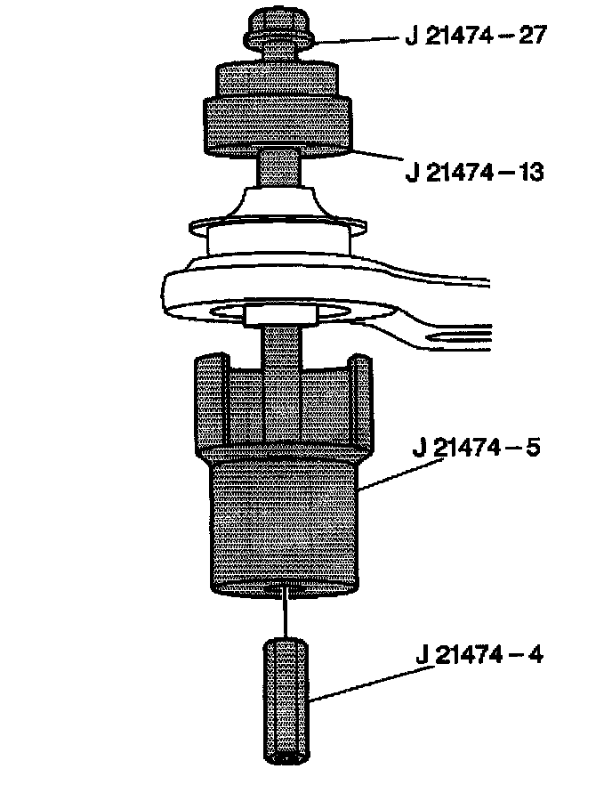 Important: Apply J 23444-A (or equivalent high pressure lubricant) to the threads of the J 21474-27.