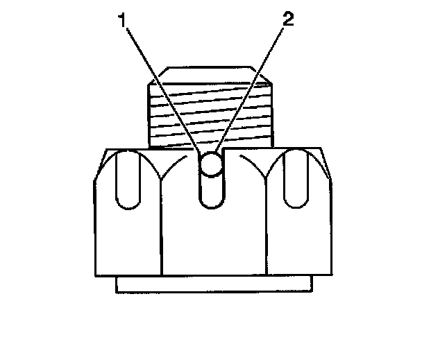 5. If necessary, tighten the ball stud castle nut in order to align the ball stud castle nut slot (1) to the ball stud cotter pin hole (2) as shown.