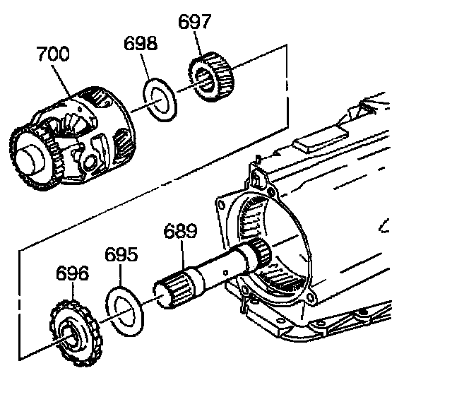 2. Remove the thrust bearing (698) from the differential carrier sun gear. The bearing may be stuck to the carrier assembly.