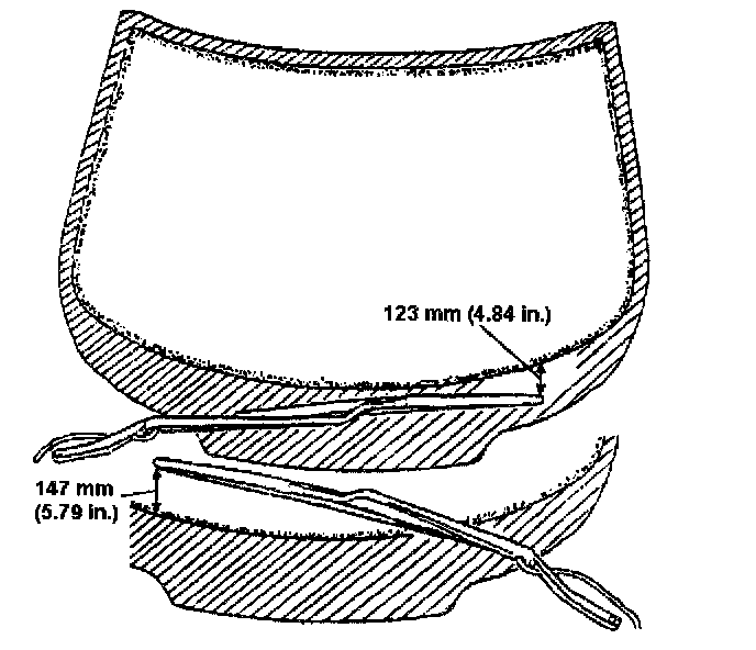 ^ LH - 147 mm (5.79 in) above the glass blackout.