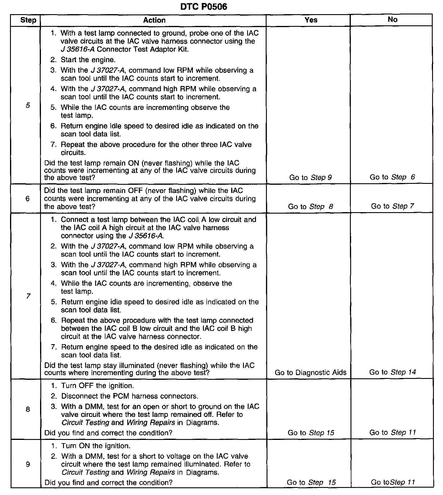 5. This test will determine the ability of the engine controller and IAC valve circuits to control the IAC valve.