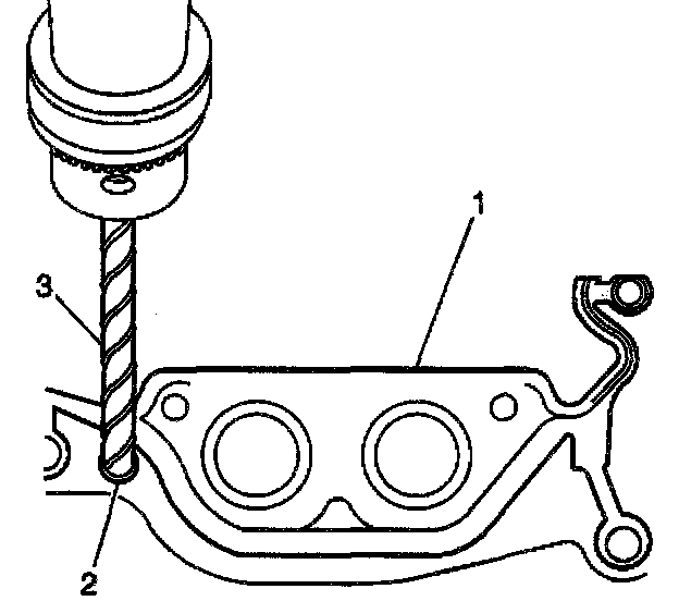 6. Drill (3) out the oil pan gasket retaining rivets (2), if required.