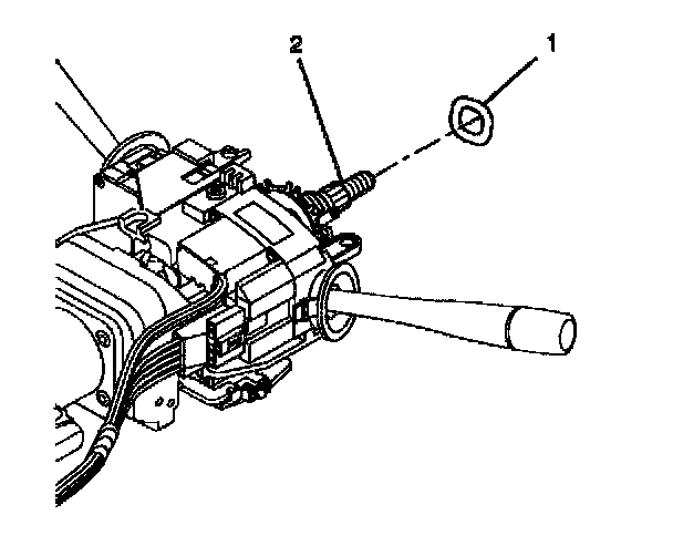 3. Install the wave washer (1) onto the steering shaft assembly (2).