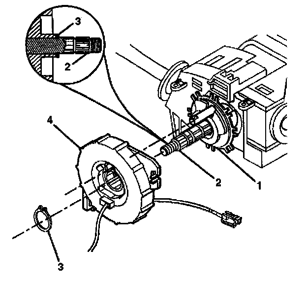 6. Slide the inflatable restraint steering wheel module coil (4) onto the steering shaft assembly (2).