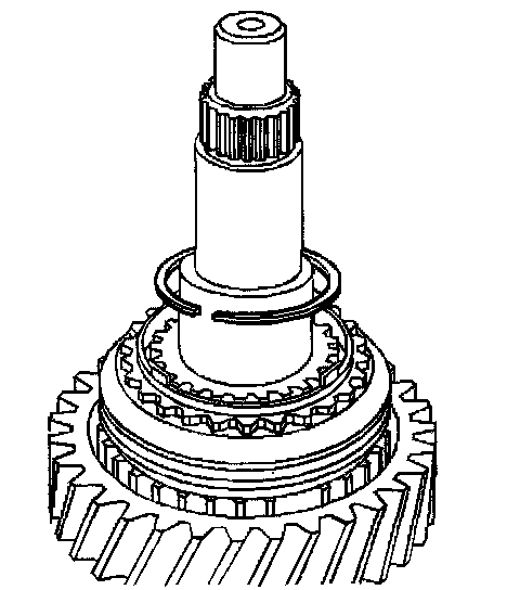 2. Install the reverse gear clutch gear and the synchronizer ring. Ensure that the synchronizer ring teeth face down toward the mainshaft shoulder.