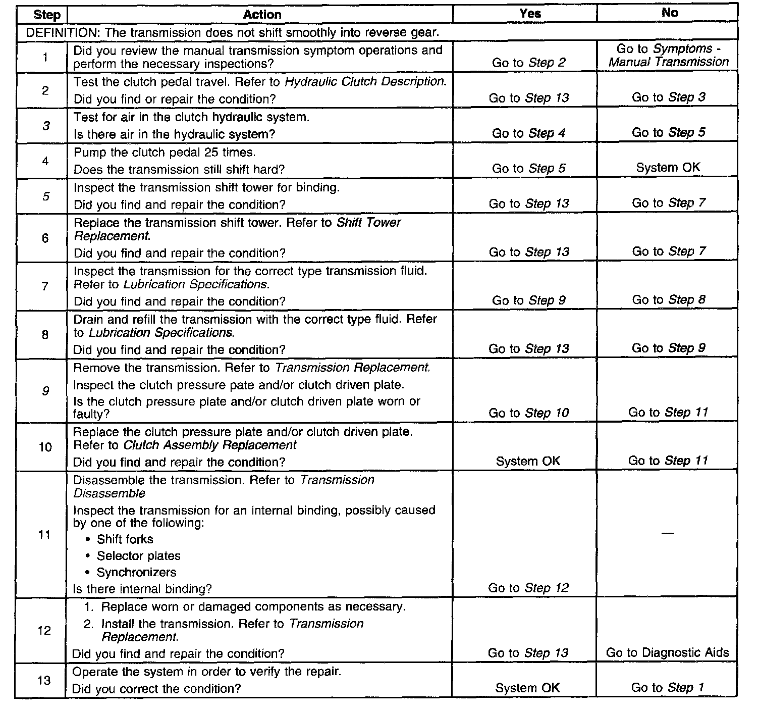Hard shifting in reverse can be diagnosed easily. You should perform a static shift and dynamic shift test. Many other simple factors could occur such as insufficient fluid, excessive fluid or even the wrong transmission lubricant. A misaligned transmission can also cause hard shifting as well as a worn or defective clutch, binding of the shift control. Many internal components can also play a factor in hard shifting such as the front bearing retainer loose or cracked, synchronizer worn, damaged or improperly assembled. A failure to fully depress the clutch pedal when shifting will cause hard shifting in reverse.