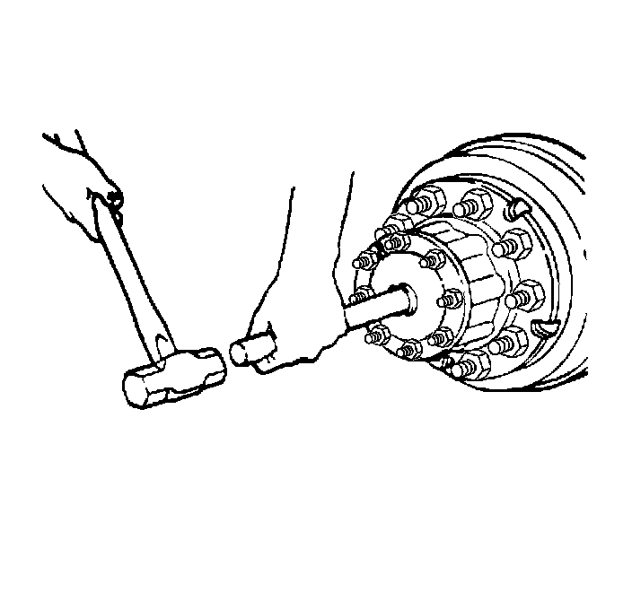1. Hold a brass drift against the center of the rear axle housing cover.