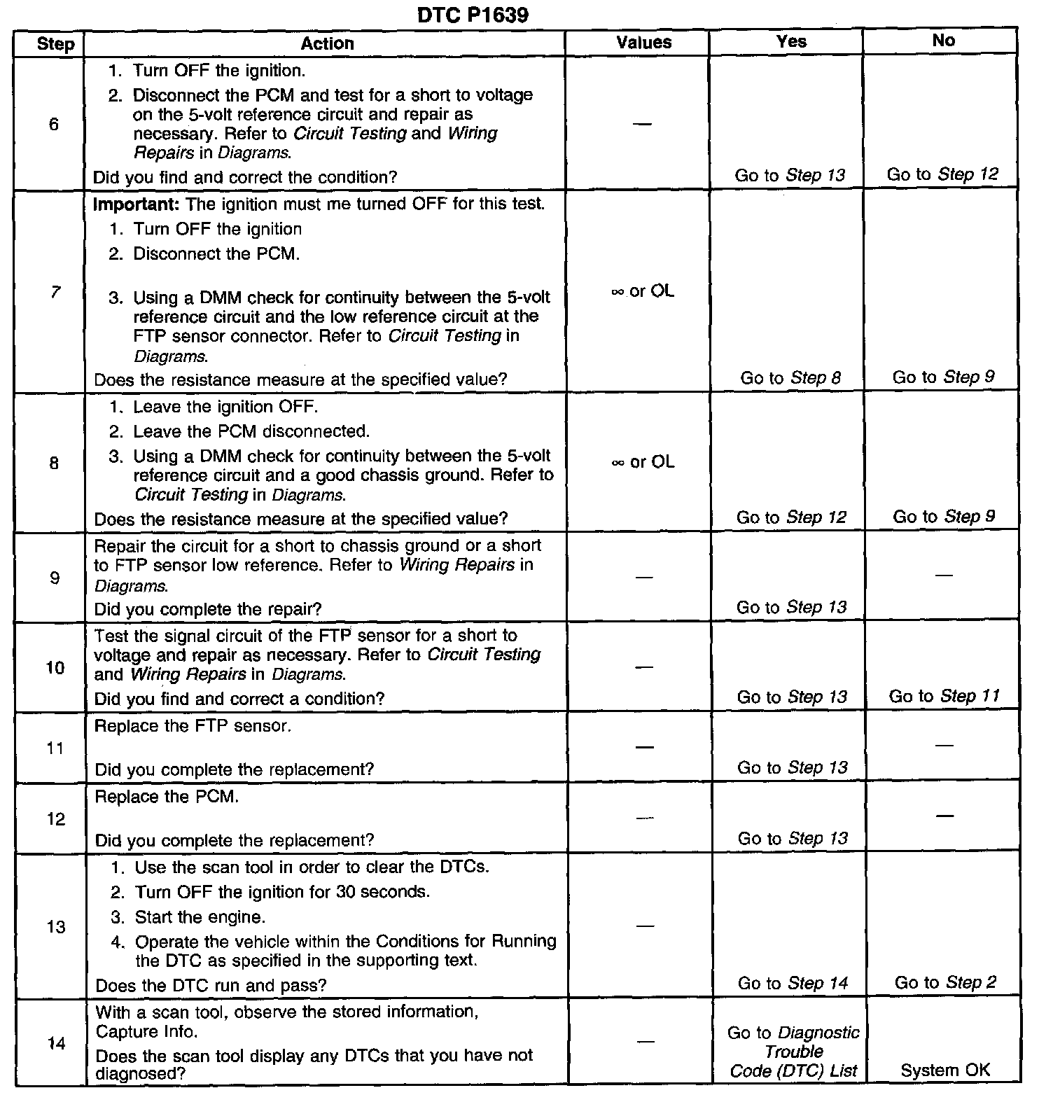 CIRCUIT DESCRIPTIONThe Powertrain Control Module (PCM) uses the 5-volt reference 2 circuit as a sensor feed for the Fuel Tank Pressure (FTP) sensor. The PCM monitors the voltage on the 5-volt reference 2 circuit. If the voltage is out of tolerance, the PCM will set DTC P1639.