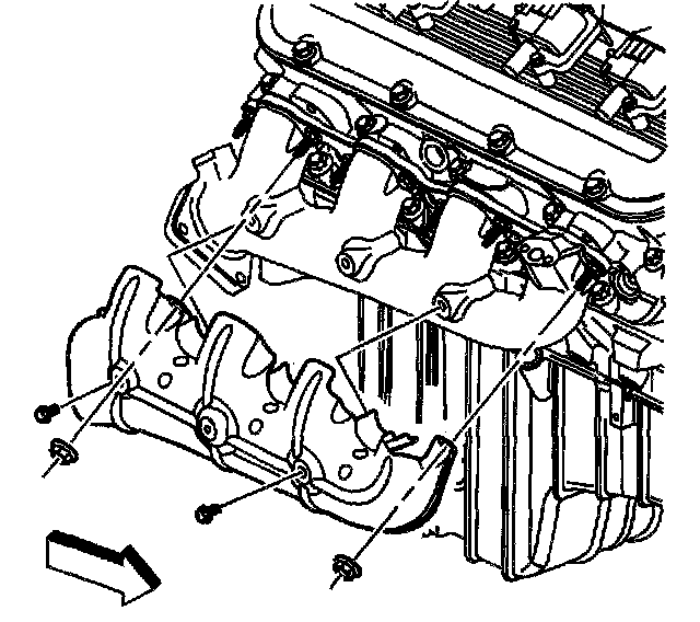 11. Remove the exhaust manifold heat shield bolts and nuts.