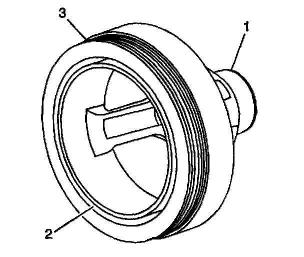 - Worn, chunking or deteriorated rubber between the hub and pulley (2)