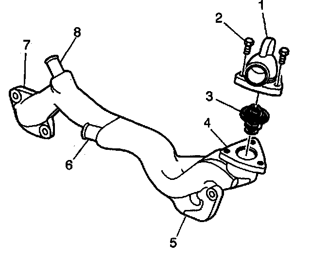 9. Remove the thermostat (3) from the coolant crossover.