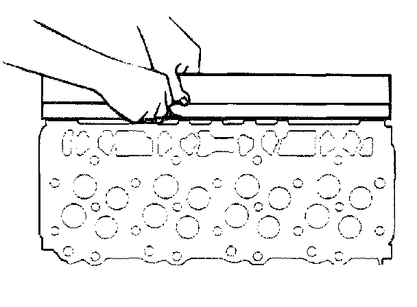 4. Measure the cylinder head for warpage with a straight edge and a feeler gauge. A cylinder head block deck with warpage in excess of 0.075 mm (0.0030 inch) within a 516.5 mm (20.33 inch) area must be replaced.