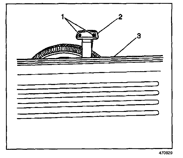 4. Install the 2 screws (1) which secure the stoplamp (2) to the housing.