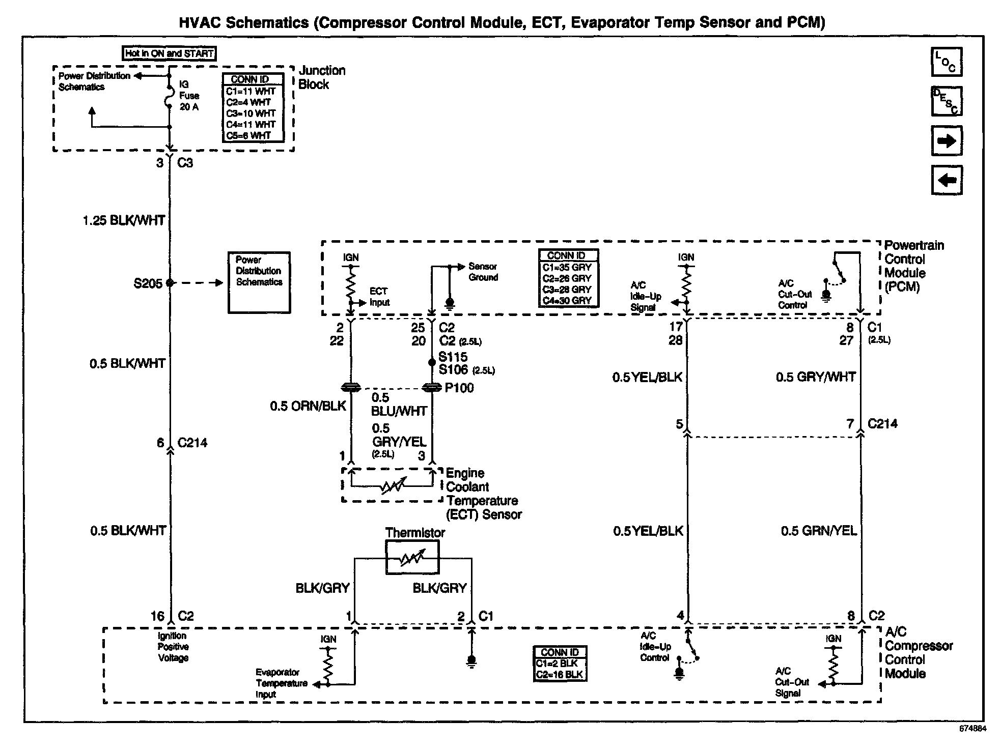 HVAC Schematics: Compressor Control Module, ECT, Evaporator Temp Sensor And PCM: