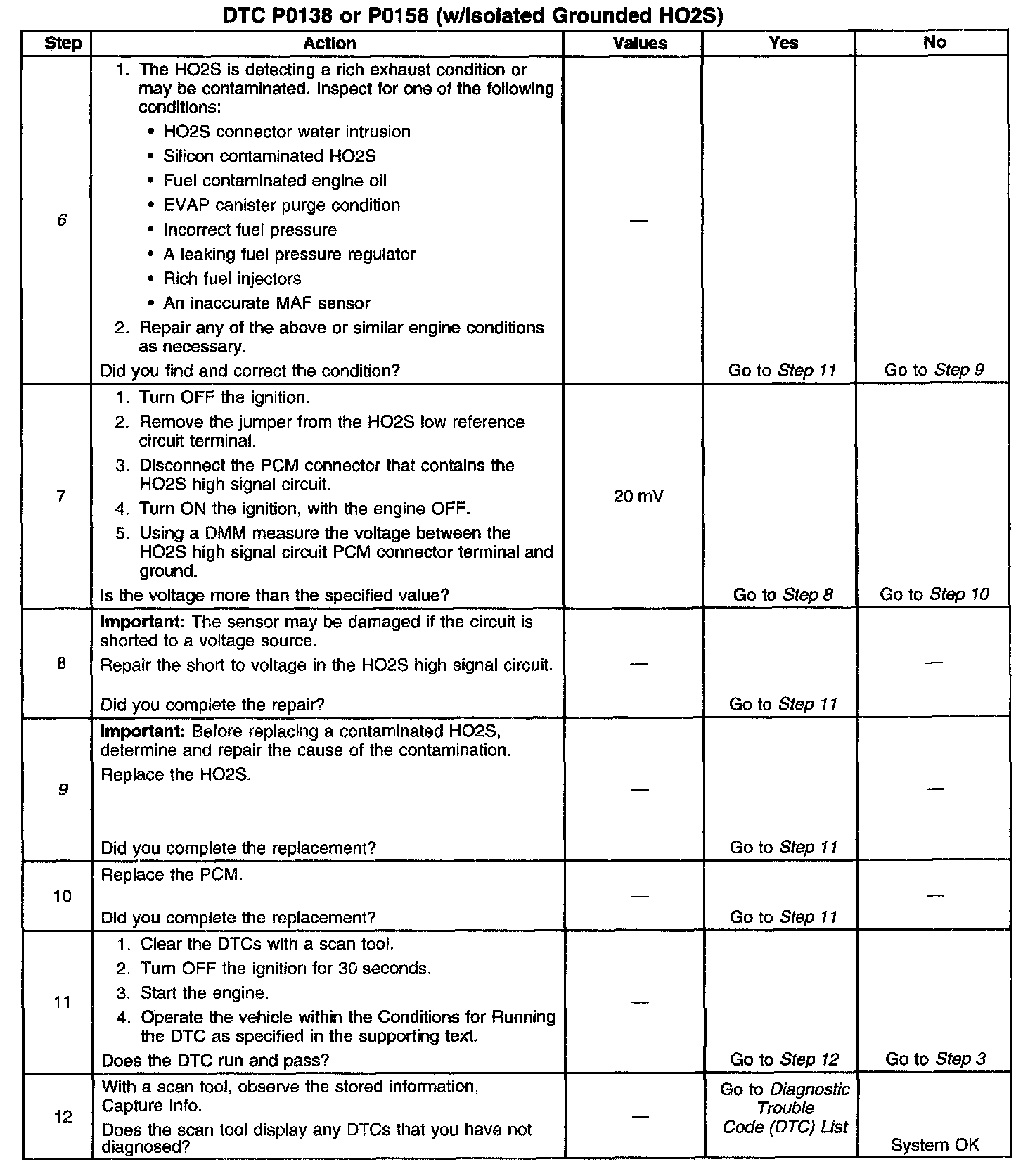 ^ False rich indication due to silicon contamination of the heated oxygen sensor-This DTC, accompanied by a lean driveability condition and a powdery white deposit on the sensor, may indicate a false rich condition.