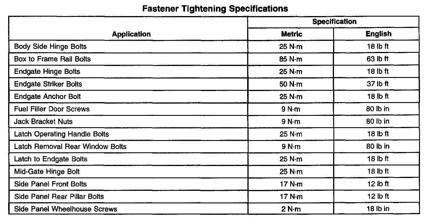 Fastener Tightening Specifications:
