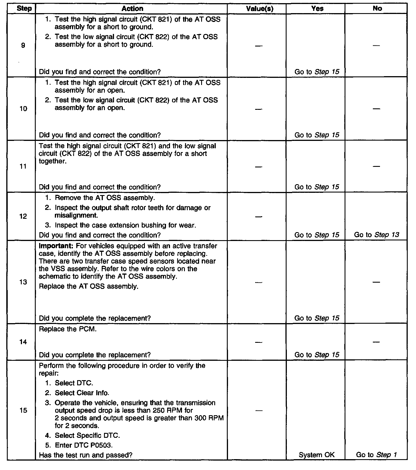 If the PCM detects a low vehicle speed and there is a high engine speed in a drive gear range, DTC P0503 sets. DTC P0503 is a type C DTC. For California emissions, DTC P0503 is a type B DTC.