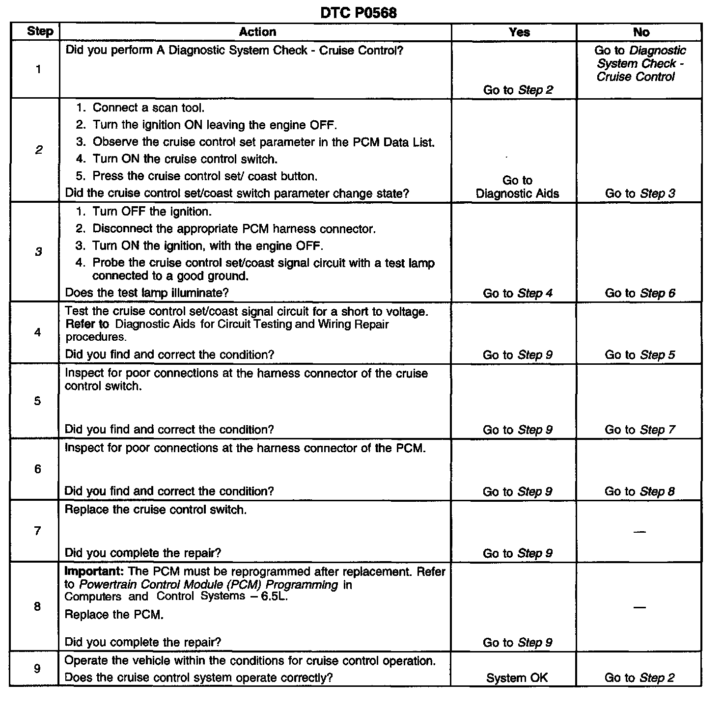 If the set/coast switch is stuck in the ON position or the driver is holding the set/coast switch ON for longer than 25.5 seconds, DTC P0568 will set. DTC P0568 only checks the signal circuit for a short to voltage.
