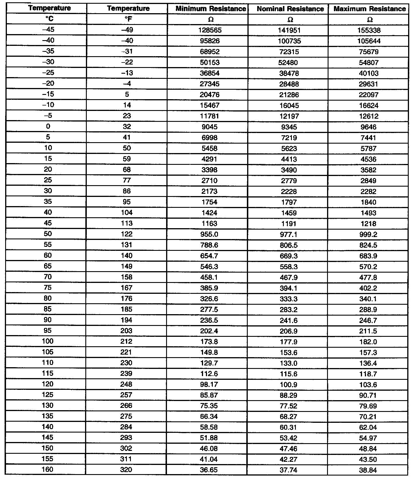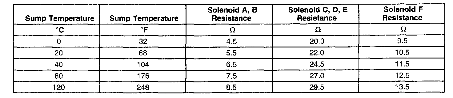 Automatic Transmission - AllisonTemperature vs Resistance (Transmission Fluid Temperature Sensor)