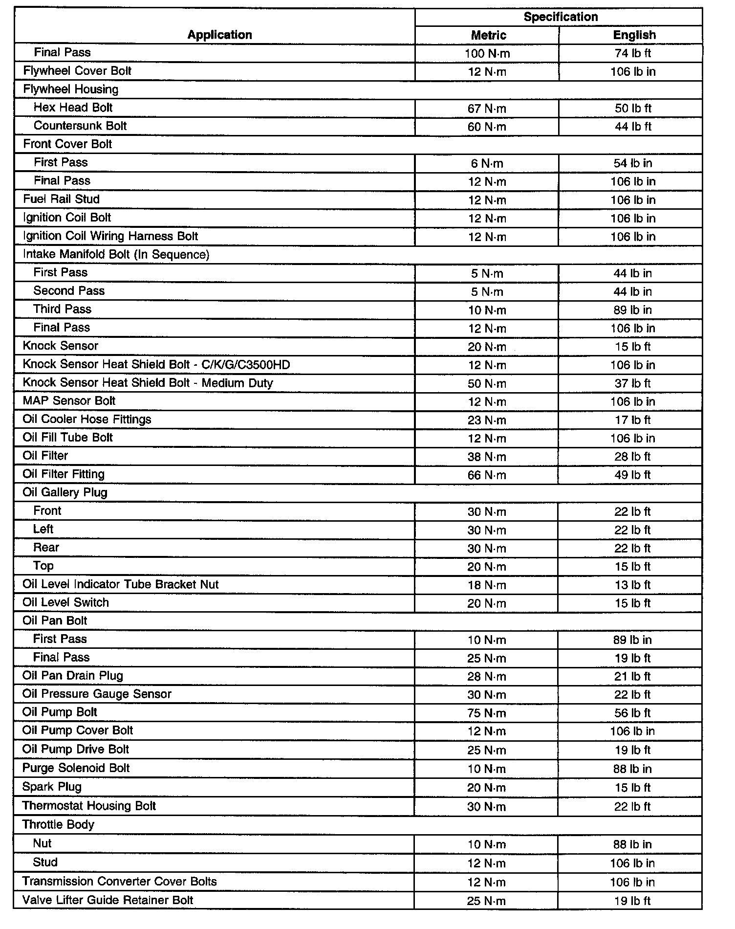 Fastener Tightening SpecificationsGeneral