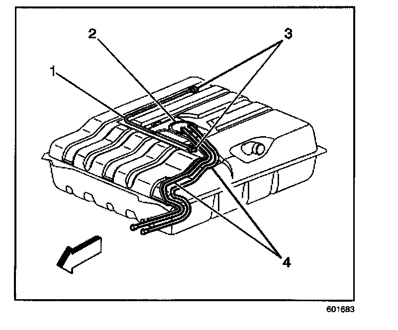 1. Install the fuel feed and return pipes (4) to the fuel sender(2).