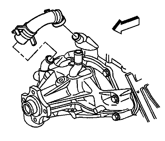 Important: After final assembly, the water pump inlet hose clamp tangs, water pump end, must point forward and the upper tang should be level with the outside diameter of the water pump inlet hose.