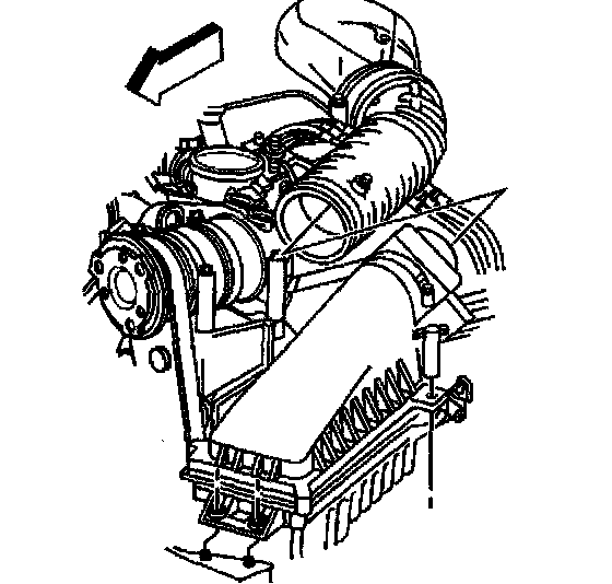 Caution: In order to avoid possible injury or vehicle damage, always replace the accelerator control cable with a NEW cable whenever you remove the engine from the vehicle. In order to avoid cruise control cable damage, position the cable out of the way while you remove or install the engine. Do not pry or lean against the cruise control cable and do not kink the cable. You must replace a damaged cable.
