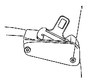 8. Install the rear seat belt (1) to the seat with the rear seat belt anchor nut (2).