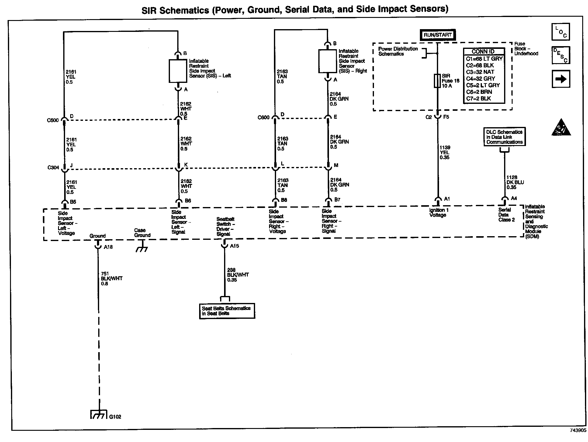 SIR Schematics: Power, Ground, Serial Data, And Side Impact Sensors: