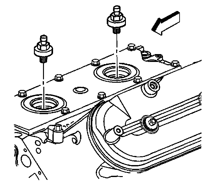 2. Install the knock sensor oil seals (1) into the engine valley cover (2).