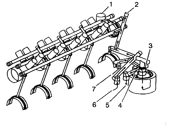 Lubrication DescriptionThe gear-type oil pump is driven through an extension driveshaft. The extension driveshaft is driven by the oil pump drive, which is gear driven by the camshaft. The oil is drawn from the oil pan through a pickup screen and tube, into the oil pump (7). Pressurized oil flows through the oil filter, into the oil cooler (5), back into the engine (6), up to the oil pressure gage port (2) and rear crankshaft bearing, and is then distributed to the upper oil galleries. Oil must flow around the oil pump drive (1) in order to reach the right side valve lifters properly. The oil is delivered through internal passages in order to lubricate camshaft and crankshaft bearings and to provide lash control in the hydraulic valve lifters. Oil is metered from the valve lifters through the valve push rods in order to lubricate the valve rocker arms and ball pivots.