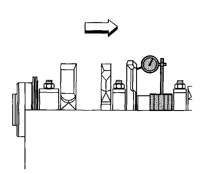 Important: In order to properly measure the crankshaft end play, the crankshaft, bearings, bearing caps and fasteners must be installed into the engine block and the bolts tightened to specifications.