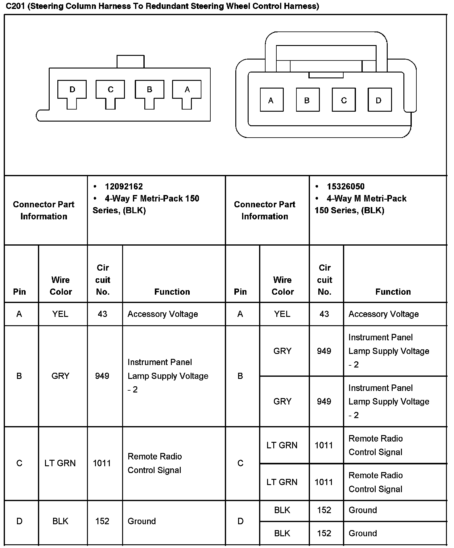 C201 (Steering Column Harness To Redundant Steering Wheel Control Harness):