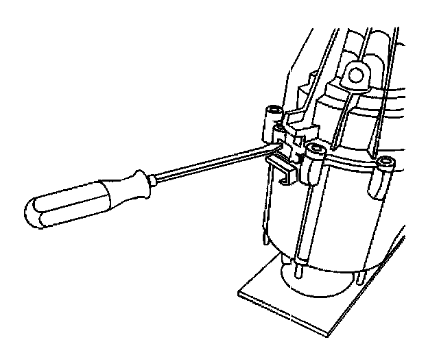 17. Insert a screwdriver into the slot on the left side of the transfer case.