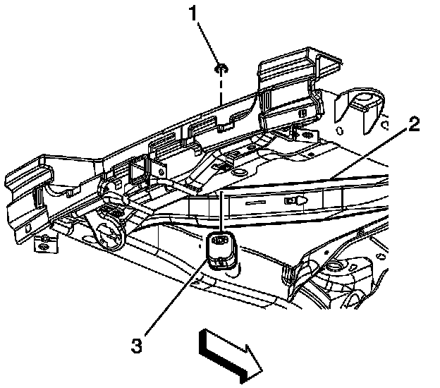 4. Remove the theft deterrent alarm (3) from the crossmember support (2).