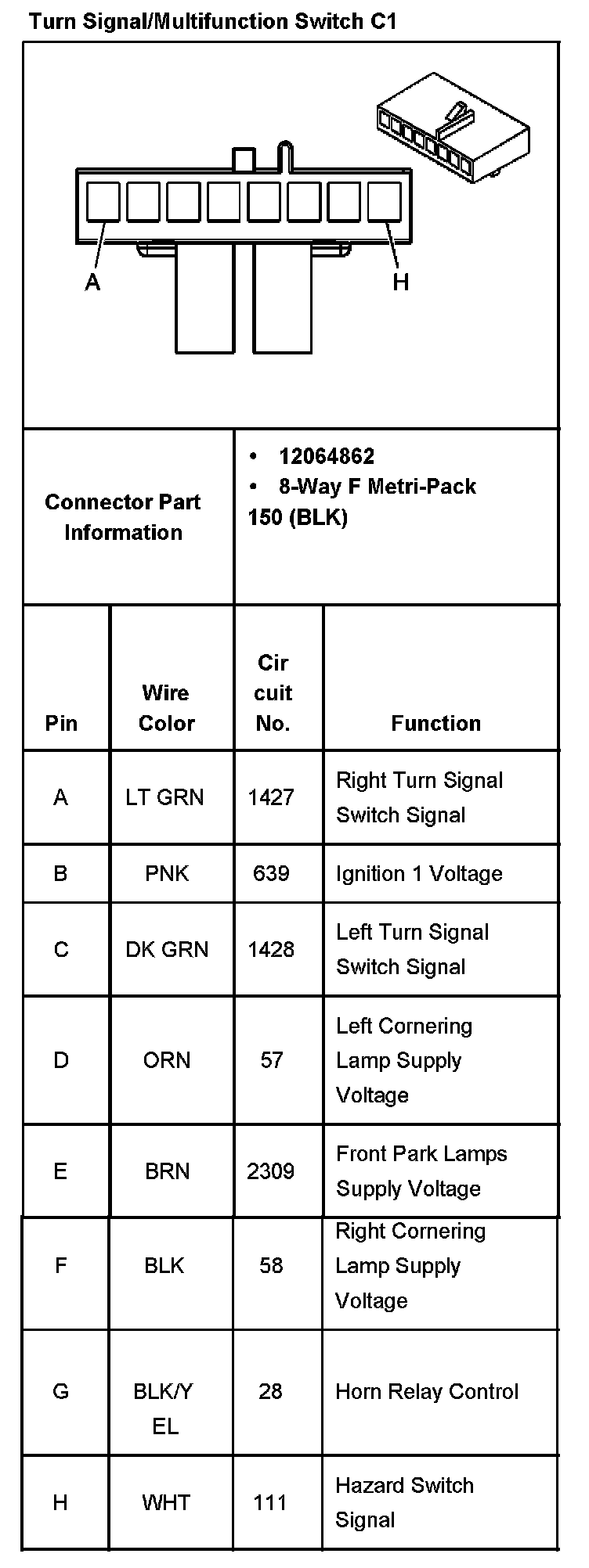 Turn Signal /Mutifuction Switch C1: